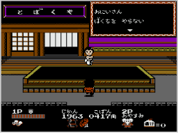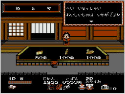 でテキストを送ります。商品はそれぞれ買うたびに少しずつ値段が上がっていきます。お店の中にいる間はゲームタイマーは減りません。2人同時プレイの場合、それぞれのコントローラーで操作できます。