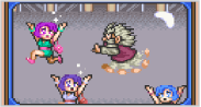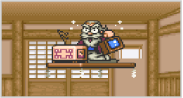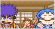 | 自称天才からくり発明家「伊賀の物知りじいさん」がタイムマシンを発明した! じいさんは、からくり忍者のサスケに留守を任せ、 さっそく大江戸はぐれ町のゴエモンの家で、タイムマシンの実験を始める。 「まず手始めに未来のギャルの様子を見に行くぞぃ」 じいさんはそう言い残し、ゴエモン達の目の前から消えてしまった。 「うひょー成功じゃ、みんな見とるかーっ?」 おおっ、ギャルじゃ!未来のギャルじゃ!」 ゴエモン達にモニターの中で狂喜乱舞しているじいさんの姿が見える。 「……ったく、じいさんのスケベぶりにも困ったもんだ……」 ところがそのとき、おみっちゃんが叫んだ。 「キャー、スケベじじ……いや……おじいさんが!」 モニターの中では、じいさんが何者かに捕まり、もがいている。 現れたのは、エビス丸そっくりの謎の人物! 「おーほほほほっ、あたしの名はシスタービスマル ザンス! このじいさんはあたしがちょーだいするザンス! これが夢の……タイムマシン ザンスか! すごいザンスーッ! 思わぬ収穫ができたザンス。 これで重禄兵衛様も大喜びに違いないザンスよーっ!」 エビス丸そっくりの奴は、そう言うとさっさとその場を立ち去っていった。 「ゴ、ゴエモンよ! 伊賀へ……サスケのもとへゆくのじゃ……」 じいさんはそう言い残し、怪しい連中に連れ去られてしまったのだった……。 はてさて、伊賀の物知りじいさんの運命はいかに……? 未来で現れたシスタービスマル、重禄兵衛とは何者か? ゴエモン、エビス丸は、この一大事を無事解決できるのだろうか? 『がんばれゴエモン3 獅子重禄兵衛のからくり卍固め』 はじまり、はじまり〜っ。 |