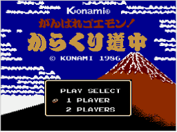 Wii本体の電源を入れたら、Wiiメニュー画面で『がんばれゴエモン! からくり道中』のチャンネルを選びましょう。タイトル画面が表示されます。 |