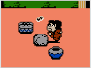 つぼや玉手箱などをジャンプで飛び越えると、アイテムや小判が飛び出てきます。これらを取るとゴエモンの能力が上がったり、所持金が増えます。このほかにも、特定の場所でジャンプをすると、隠されたアイテムが現れることがあります。 |