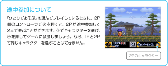 2人プレイ中にミスした場合、プレイヤーの残り数があれば、ミスした場所に浮いている状態で復活します。 |