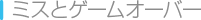 敵や敵の攻撃、竹槍などのしかけに当たるとライフが減り、ライフがなくなったり穴などに落ちてしまうとミスになります。ミスになると、プレイヤーの残り数が1つ減り、エリアマップ画面に戻ります。なお、プレイヤーの残り数が0のときにミスをするとゲームオーバーです。