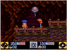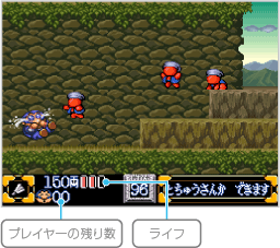 ※高速ステージや3Dボス対戦ステージの場合、「ゴエモン・いんぱくと」のエネルギーが0になると、1P、2Pともにミスとなります。 |