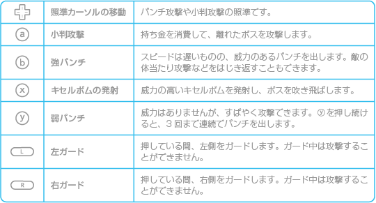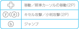基本的な操作方法は道中ステージと同じです。2人プレイの場合は、2Pが ![]() |