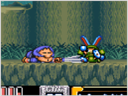 伏せた状態で敵を攻撃すると、攻撃した敵が転びます。転んだ敵に横から当たると蹴り飛ばすことができ、当たった敵を倒すことができます。ただし、転んだ敵をそのままにしておくと、起き上がって一定時間スピードアップするので注意してください。なお、転ばせることができない敵もいます。 |