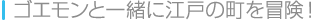 | ゴエモンはキセル、エビス丸は笛を使って攻撃するのが基本。でも、アイテムの「まねき猫」を取るとパワーアップ! 2段階パワーアップすれば、ゴエモンならヨーヨー、エビス丸ならピロピロ笛が使えるようになり、攻撃が届く距離もぐーんと長くなります。さらに、究極の飛び道具・小判を投げれば、ちょっといい気分になれるかも!? もちろん、投げた小判は返ってきません。間違えて投げてしまわないよう要注意です。 | ![]() |