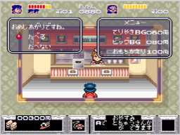 町シーンにはさまざまなお店があり、アイテムを買ったり、ミニゲームで遊ぶことができます。 |