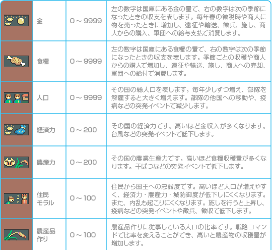 相場とは、商人と取引するときの値段の基準で、季節ごとに変動します。相場が高いときは商人に物を売り、相場が低いときは商人から物を買うと有利になります。 |
