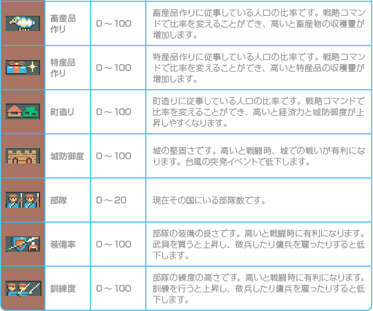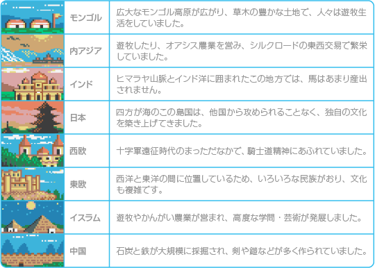 文化タイプには以下の8つがあります。タイプによって徴兵できる部隊や、経済力城防御度の上昇のしかたが異なります。 ![]() |