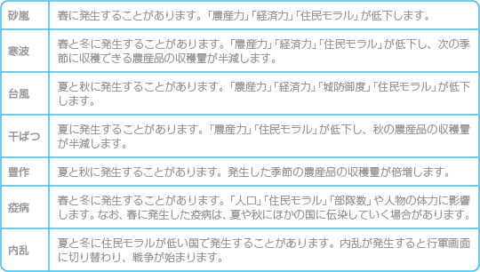 ※「豊作」「疫病」「内乱」は、すべての国で発生します。