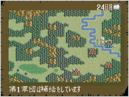 補給率は、戦争中の部隊の兵糧の状態を表しています。補給率が低い状態だと兵士が減りやすいので、行軍コマンドの「補給」で食糧を補充してください。 |