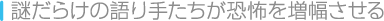 話し手たちが語る怖い話は、何番目に話してもらうかによって変化します。つまり、1人から6つの異なる話を聞くことができるのです。さらに、ゲームを進めた状況によって最後のシナリオも変わり、特定の条件を満たすと隠れシナリオも現れます。数ある話のうち、あなたはいったいいくつの話を聞くことができるでしょうか? |