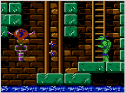 4人の亀忍者はそれぞれ異なる武器を持っているため、攻撃範囲や攻撃スピードなどが違います。すばやく攻撃したいときは「ラファエル」、上階にいる敵を攻撃したいときは「ドナテルロ」など、敵の数や位置によって亀忍者を切り替えながら進めましょう。 |