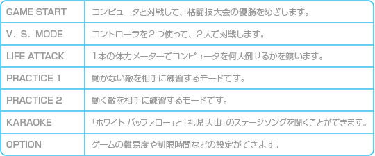 GAME START時の画面で紹介します。モードによって別の表示が加わることがあります。
