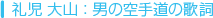 (1番) いばらの道を幾千里 進んで鍛えたこの体 男の意地を貫けば やがてはみなぎるド根性 あーあー紅の 夕日を背にうけて あーあーいざや行け 男の空手道 (2番) お前と俺は宿命の 闘い終えるその日まで 修行の日々の繰り返し 血の汗流すこの拳 あーあー青い月 瞳に焼き付けて あーあーいざや行け 男の空手道 |
