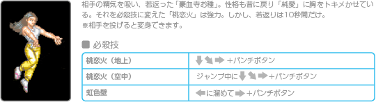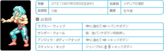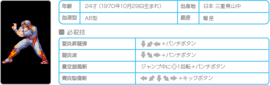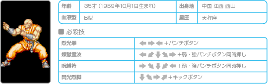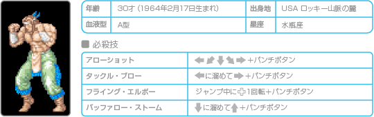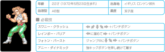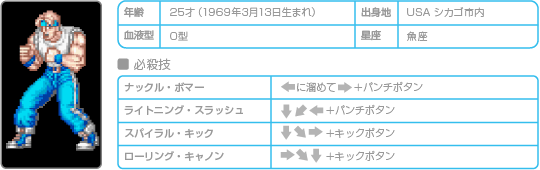 必殺技のコマンドはキャラクターが右向きの場合のものです。矢印は |
