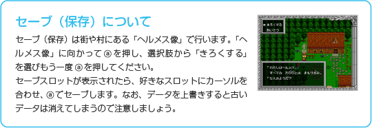 で決定してください。新しくゲームを始めるときは「ぼうけんを はじめる」を、前回の続きからゲームを始めるときは「ぼうけんを つづける」を選び、読み込むデータを選んでください。