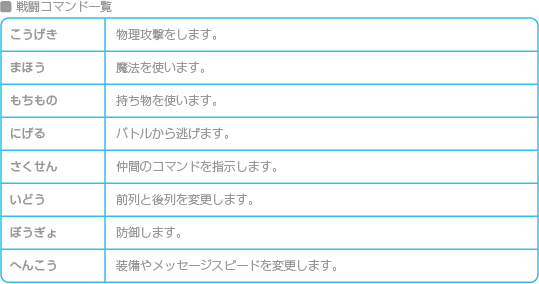 ![]() ※「さくせん」「いどう」「へんこう」は、そのほかのコマンドを選ぶ前であれば何度でも選択することができます。