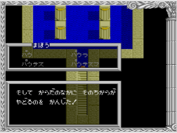 街などの近くにある神殿の奥には泉があり、ここに入るとさまざまな魔法が宿ります。ただし、魔法は宿るだけでは使うことができません。魔法を使えるようになるには、戦闘を行って主人公のレベルを一定量上げる必要があります。使用可能になった魔法は、ウインド画面や戦闘画面の「まほう」で使うことができます。