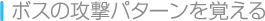 「神殿」の扉を開くために必要な「カギ」など、重要なアイテムを守るボスは、決まった攻撃をしてきます。攻撃のパターンを覚えておくと、敵のスキを見つけて攻撃しやすくなります。 |