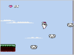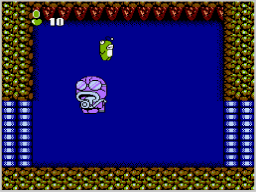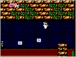 | マグマの中に落ちたり、トゲに刺さってもライフがある限りゲームオーバーにはなりません。敵を倒して「命の実」を取ったり、「くすり」などを使ってライフの残量を多めにしておくことが大切です。 | ![]() |
