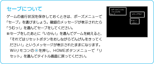 Wii本体の電源を入れたら、Wiiメニュー画面で『半熟英雄』のチャンネルを選びましょう。タイトル画面が表示されます。 |
