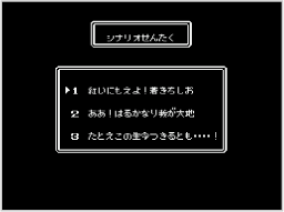 初めて遊ぶときはタイトル画面で「NEW」を選び、シナリオの選択と名前の入力を行ってゲームを始めましょう。 続きから遊ぶときは「CONTINUE」を選ぶと、前回セーブしたところから再開できます。 |