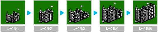 城にはレベルがあり、レベルが高いほど城を守る将軍の部隊が強くなります。自軍の城レベルは、月1コマンドで「ちくじょう」を選ぶと上げることができます。 なお、城はほかの軍に制圧されるとレベル1に戻ります。 ![]() |