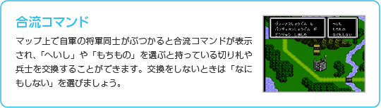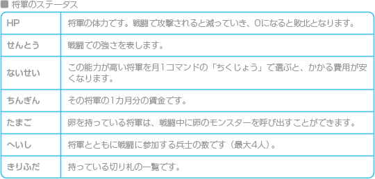を押すと、コマンドメニューが表示されます。このメニューを選んで将軍を動かしましょう。