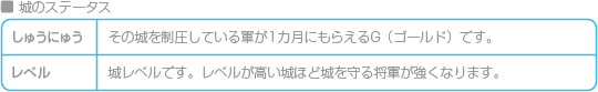 マップ画面で自軍の城や将軍にカーソルを合わせて