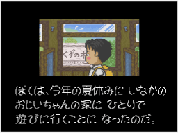 キミのお父さんがまだ小学生だった頃のお話です。 主人公の少年は、夏休みを利用して初めて1人でおじいちゃんの住む、のどかで自然の残る村にやってきました。 駅で待ち合わせる予定のおじいちゃんがまだ到着していなかったので、主人公は駅長さんに教えてもらったホタルを見に、駅の周辺をうろうろしていました。 そして1匹のホタルを追って、行ってはいけないと言われていた線路の向こうの崖から落ちてしまいました。 そのとき、たくさんのホタルたちと遊ぶ紫色の着物を着た少女と出会います。 初めは主人公を警戒して、なかなか心を開こうとしなかった少女でしたが、次第に打ち解け主人公は駅への帰り道を教えてもらいました。 しかし、遅刻したおじいちゃんが現れるとその少女は姿を消してしまいました。 しかも、小さい村にもかかわらず村人たちは誰もその少女のことを知りません。 もう一度、その少女に会いたい。 主人公の短いけど長く、ドラマチックな冒険が始まります。 |