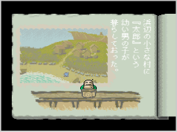 『平成 新・鬼ヶ島』は前後編に分かれており、後編であるこのゲームでは第三話からお話が始まります。第三話はキジの「おはな」と漁師の「太郎」、竜宮城の「乙姫」のお話です。第四話は「おはな」と前編の主人公だった「りんご」、「まつのすけ」を中心にお話が進みます。このほかにも『ふぁみこんむかし話 新・鬼ヶ島』の主人公(男の子と女の子)も登場します。 ![]() ![]() |