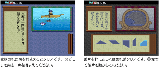 ゲームを進めていくとミニゲームをプレイする場面が登場し、クリアするとお話を進めることができます。ミニゲームにはアクションゲームや謎解きゲームなどがあり、それぞれ操作方法が異なります。画面に表示される操作方法やルールを確認して、挑戦してください。 ![]() |