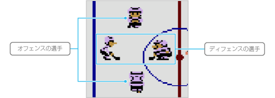 フェイスオフ時に決めたフォーメーションによって、各選手の役割が変わります。選手の体格や相手チームのフォーメーションを考えながら、自チームのフォーメーションを決めてください。