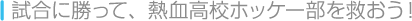| 『いけいけ!熱血ホッケー部「すべってころんで大乱闘」』は、1992年2月7日にファミコン用ソフトとして発売されたスポーツアクションゲームです。 プレイヤーは熱血高校ホッケー部を廃部の危機から救うため、アイスホッケーの試合に挑戦します。『くにおくん』シリーズでおなじみのキャラクターたちも登場する、ハチャメチャな試合を勝ち進んでいきましょう。 |