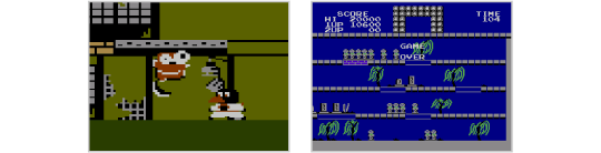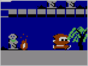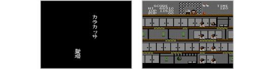 妖怪たちを手裏剣などで倒して、なまず太夫にとらわれたさくら姫を助け出しましょう。ステージに現れるすべての敵を倒すとステージクリアです。 『忍者じゃじゃ丸くん』は21のステージに分かれ、1〜3は「おゆき」、4〜6は「クロベエ」、7〜9は「カラカッサ」、10〜12は「ヘドボン」、13〜15は「ピン坊」、16〜18は「カクタン」といった妖怪たちが中心に登場し、19〜21はそのすべての妖怪たちが襲ってきます。ステージ21をクリアしたら、続けてもう一度ステージ1から挑戦してください。 ![]() |