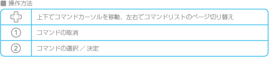 ※コマンドリストのページ切り替えは、コマンドの下に矢印が表示されているときのみ行えます。