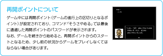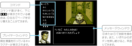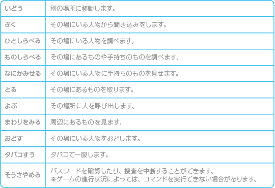 ゲーム中に登場するおもなコマンドは以下のとおりです。 ![]() |