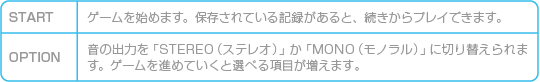 で決定してください。「START」と「OPTION」の2つのメニューが表示されるのでいずれかを選びましょう。