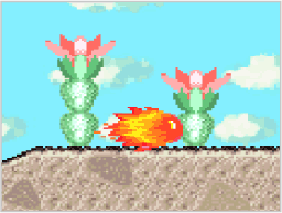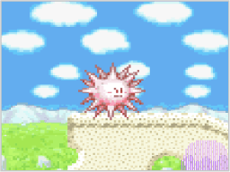 体中からトゲを出して、触れた敵を攻撃します。ジャンプしてから使うと、下にいる敵を攻撃できます。 |