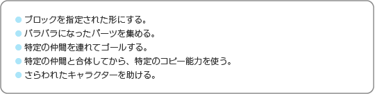 各レベルには、ミニゲームを遊べるステージが1つずつあります。ミニゲームをクリアしてゴールすると、ハートスターを獲得できます。