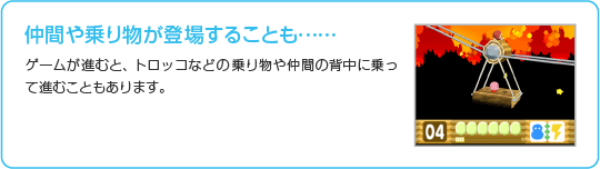 カービィはさまざまなアクションを使って冒険します。ここでは各操作を紹介します。