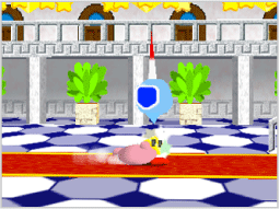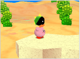 を押すと、ほおばっていた敵やブロックを上に持ち上げます(リフトアップ)。能力をコピー中は、コピー能力を能力星に変えてリフトアップします。