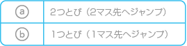 ジャンプを使い分けて、できるだけ早くゴールに向かうゲームです。ゴールしたプレイヤーから順に1〜4位となります。 水たまりに入るとジャンプした場所からやり直しになり、カエルなどを踏むとしばらく動けなくなるので注意しましょう。 ![]() |