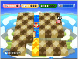 ほかのプレイヤーを床ごと落として、自分が最後まで残ることをめざすゲームです。落ちてもプレイを続けられますが、5回落ちると負けです。残っていた時間が長いプレイヤーから順に1〜4位となります。 ![]() |