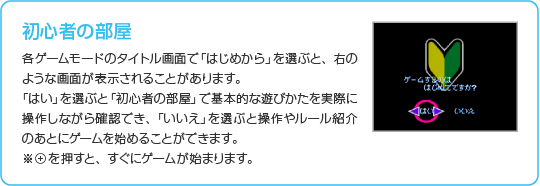 で決定してください。サブゲームを選ぶと、1人または2人で、簡単な対戦ゲームを楽しむことができます。