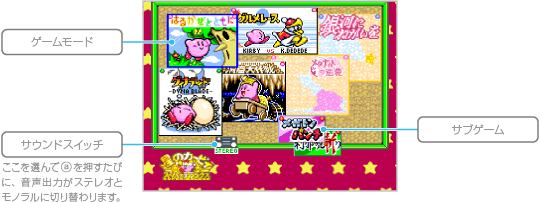 ※「メタナイトの逆襲」と「銀河にねがいを」は、特定のゲームモードをクリアすると、選べるようになります。