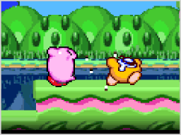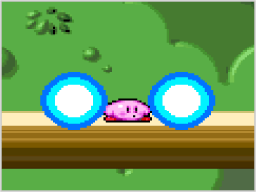 を押している間、敵やブロックを吸い込んでほおばることができます。なお、能力をコピーしている状態では、敵やブロックを吸い込めません。