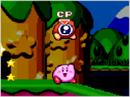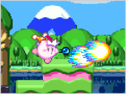 を押すと、すっぴんビームを撃ちます。ビームがヘルパーに当たると、ヘルパーが能力アイテムに変身します。