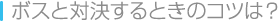 | ステージに登場するボスには、一定の行動パターンがあります。攻撃後にスキができるなど、相手の行動パターンから攻撃のチャンスを見つけられると、攻略がラクになります。 | ![]() |